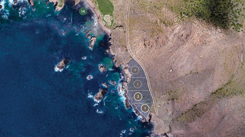 West-facing homesites set along the southern edge of the Club, with direct Pacific frontage. The South Shore offers four generously scaled parcels, each with its own relationship to the shoreline and the open ocean horizon. The most naturally secluded position on the peninsula — beyond the back nine and at the water’s edge. Afternoon light, unobstructed sunset views, and a setting defined as much by its quiet as by what it overlooks.